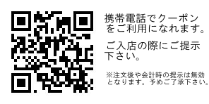 | 【割引】 お食事代金10%OFF | 携帯でクーポンをご利用になれます。 |