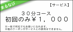 | 【サービス】 30分コース初回のみ\1,000 | 携帯でクーポンをご利用になれます。 |