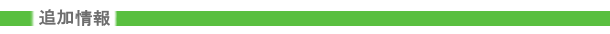 こちらには追加情報として、写真やメニュー、商品情報等をお載せする事ができます。 その他に、求人情報やキャンペーン情報等に幅広くご利用戴けるスペースになっております。 写真及び画像は3点まで追加料金無しでご利用戴けます。また、上の緑色のバーに書かれている追加情報の文字も、用途に合わせて変更でが可能です。 |